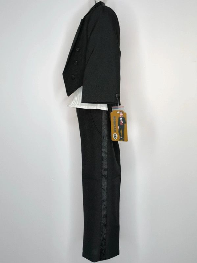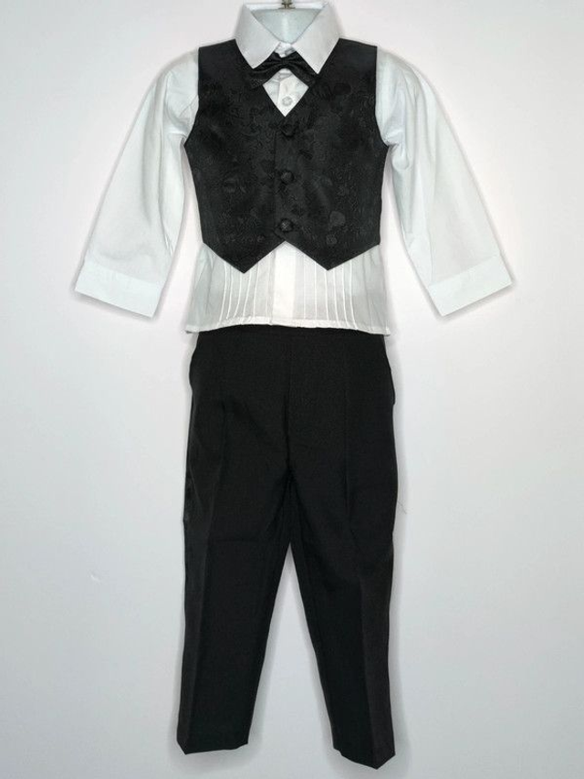 Ensemble de veste, gilet, chemise, pantalon et nœud papillon.